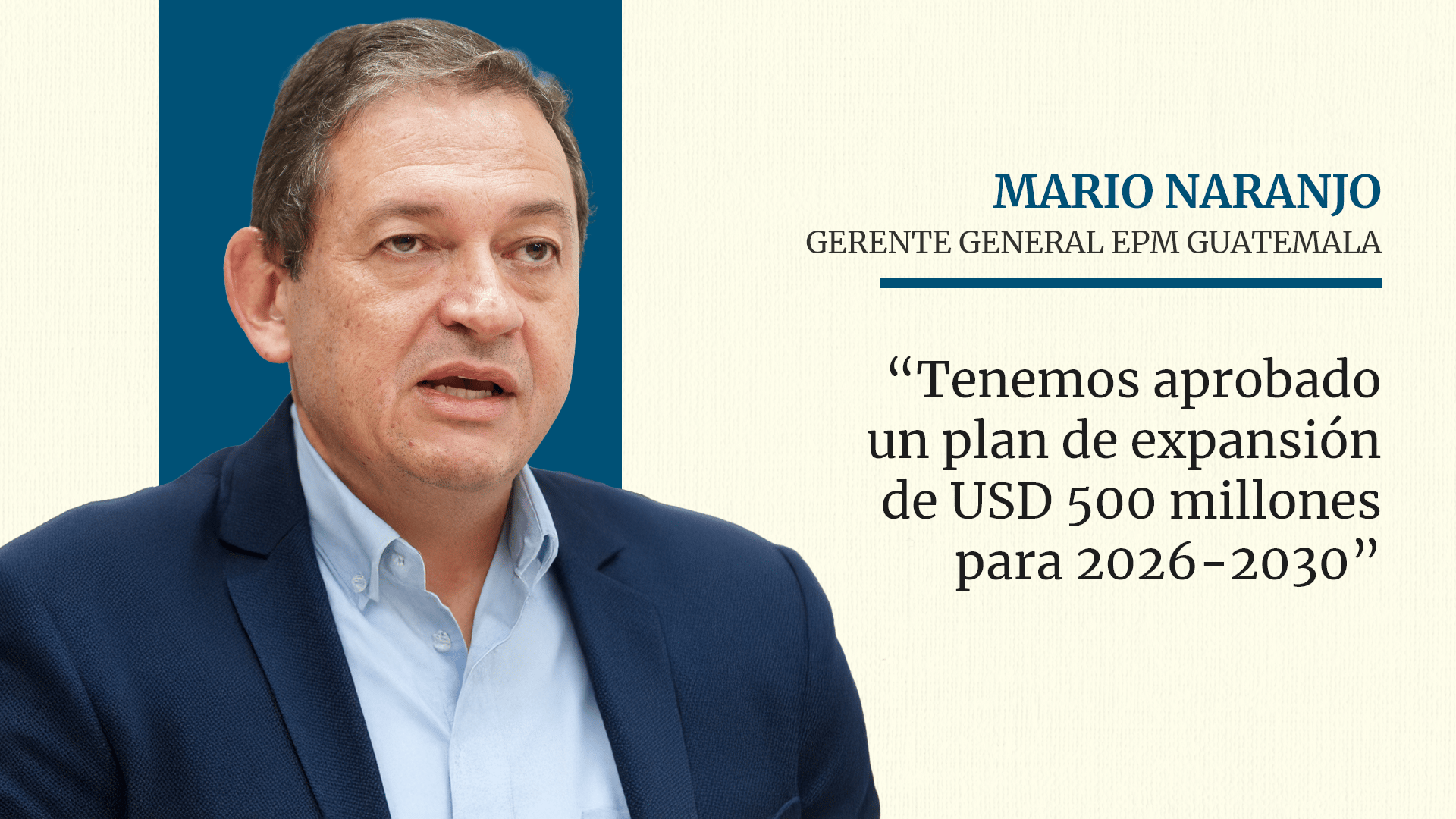 —El Grupo EPM cumple 70 años desde su fundación en 1955. Es 100 % de capital público en Colombia, propiedad del municipio de Medellín. A Guatemala llegamos mediante la adquisición de los activos que tenía el grupo liderado por Iberdrola. Esa operación nos permitió incorporar ocho compañías del sector eléctrico. Las más reconocidas son Empresa Eléctrica, como distribuidora; TRELEC, como transportista; y COMEGSA, como comercializadora líder. También contamos con ENÉRGICA y otras compañías menos conocidas, como AMESA, IDEAMSA, EEGSA y CREDIEEGSA, orientadas a servicios internos o a terceros.